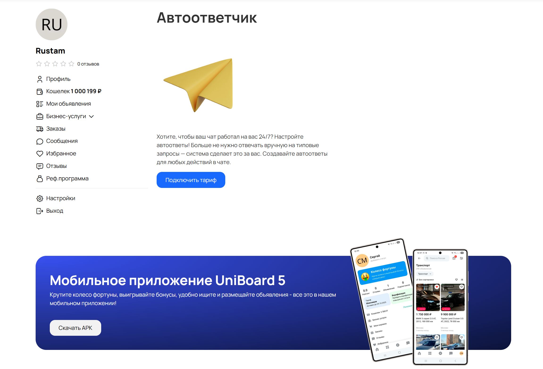 Услуга доступна только при подключении платного тарифа. Модуль «Автоответчик» станет эффективным инструментом для привлечения покупателей к товарам и увеличения продаж.
